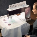 Projiziert Führungslinien auf den Stoff und zeigt die Position des Stiches an, beziehungsweise projiziert Stickmotive auf den Stoff für präzise Ergebnisse.